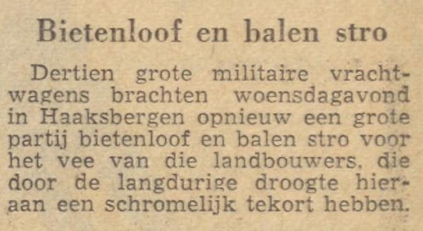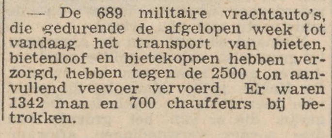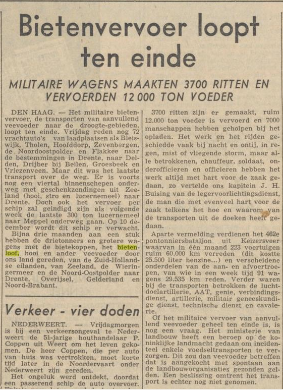 In de Wieringermeer werden daags na de suikerbietenoogst bij de familie de Graaf aan de Koggenrandweg op 7 oktober 1959 de bietenkoppen en het -loof door soldaten op legertrucks geladen. Via de Afsluitdijk vertrok een colonne met Rolde (Drenthe) als eindbestemming.