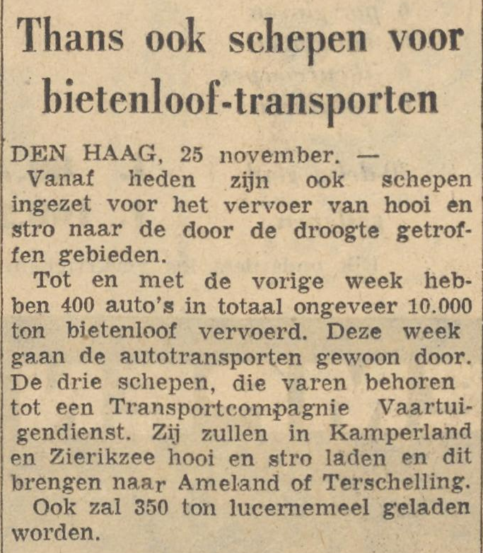 - Actie Bietenloof – Bron: Prov. Drentse en Asser courant – 07-11-59