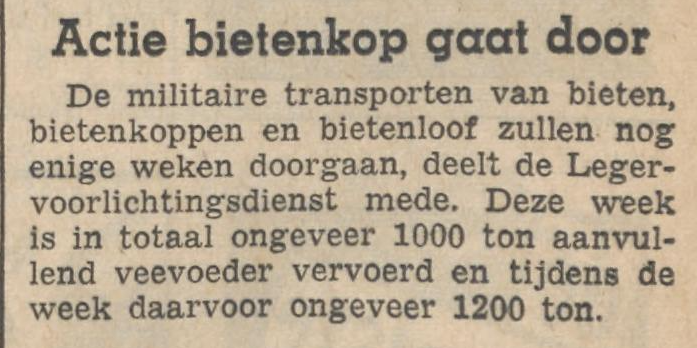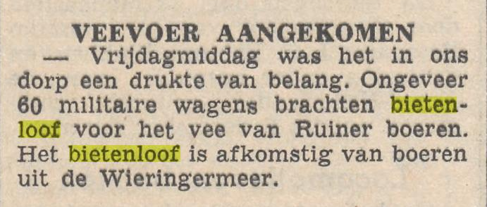(bron: Historisch Genootschap Wieringermeer – hier is sprake van de term “actie Bietenkop” werd echter veelal “actie Bietenloof” genoemd).