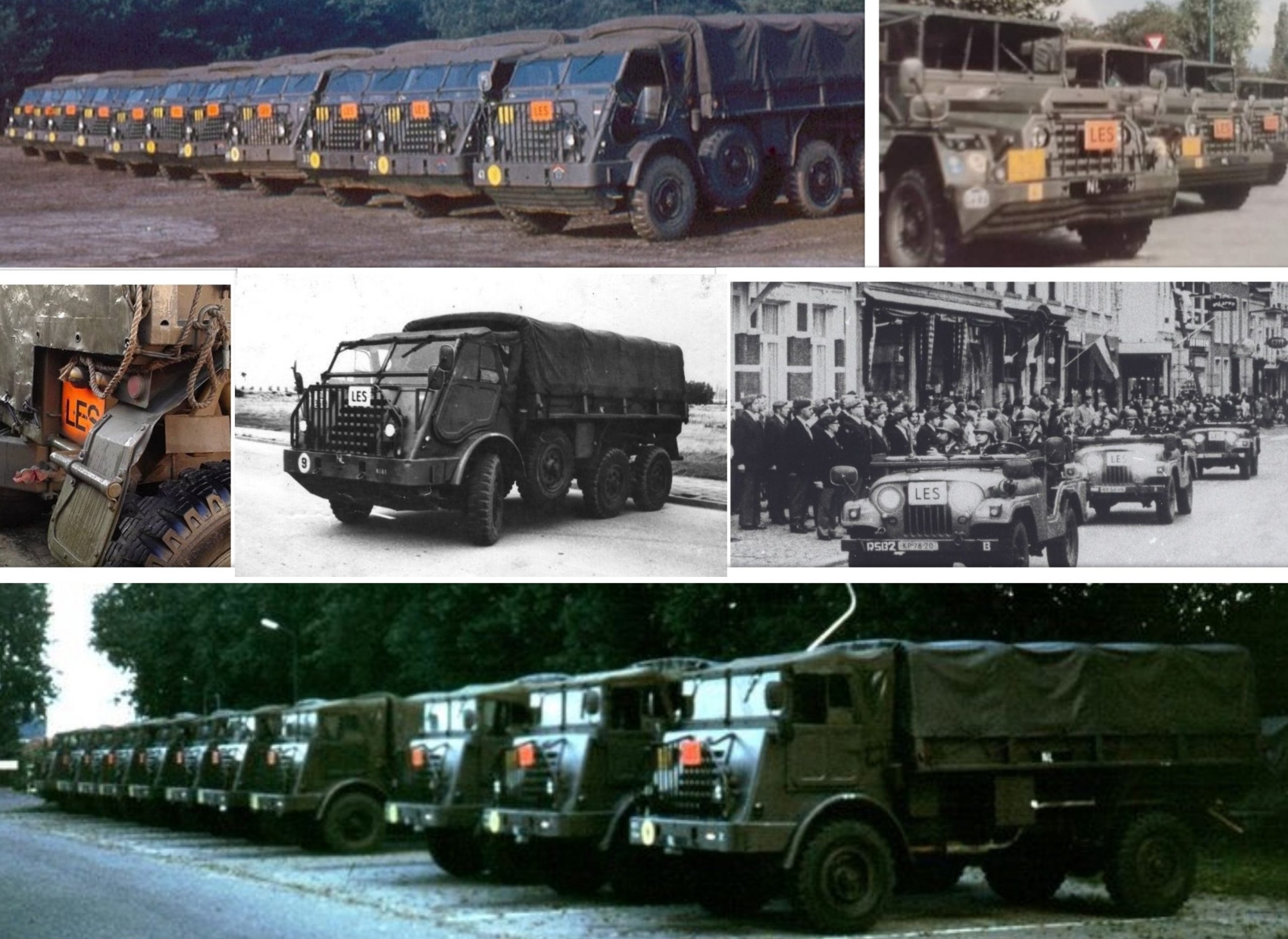 Over het colonnevlak valt ook wel wat meer te vertellen. Op foto’s van voor +/- 1959 zie je ze eigenlijk nooit op legervoertuigen. Maar bij de eerste grote colonneritten naar La Courtine werden de voertuigen in afzonderlijke voertuigpakketten in de colonne verdeeld en genummerd.