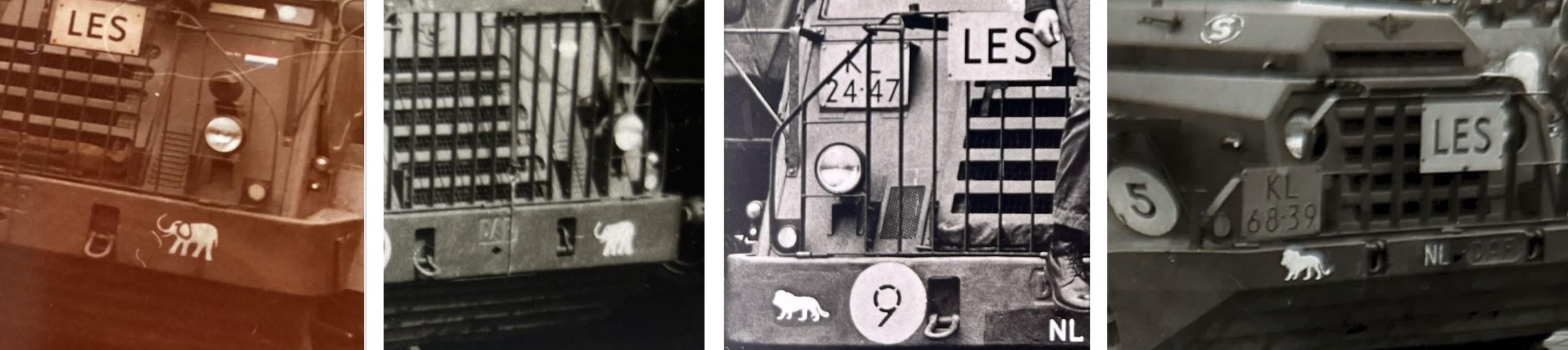 Tot begin 70-tiger jaren werd het eigenlijk weinig toegestaan ook maar iets “eigens” in de vorm van een bord, naam of spreuk op een voertuig aan te brengen. Maar naarmate de voertuigen ouder werden en de regeltjes iets losser zag je vooral bij toolsetwagens en takeldozen van onderhoudsgroepen het aantal borden met een logo en/of (groeps)naam toenemen. Tijdens vredesoefeningen zoals de schietseries in bij Bergen-Hohne hadden sommige eenheden ook wel mascotteborden aan hun voertuigen. In Libanon zag je regelmatig damesnamen en soms ook wel borden. Met de komst van de DAF YA 4440 en de nieuwe takeldozen in de 80-tiger jaren verdween dit verschijnsel weer langzaam uit beeld.