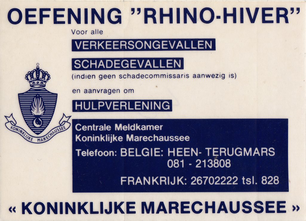 Voor deze oefening ontbreekt het ons alle informatie. Alleen als gevolg van onderstaande voorruit sticker van de KMar weten dat er een dergelijke oefening is geweest, of in ieder geval in voorbereiding is geweest. Weet u meer, laat het ons weten op info@41dko.nl. Alvast bedankt.