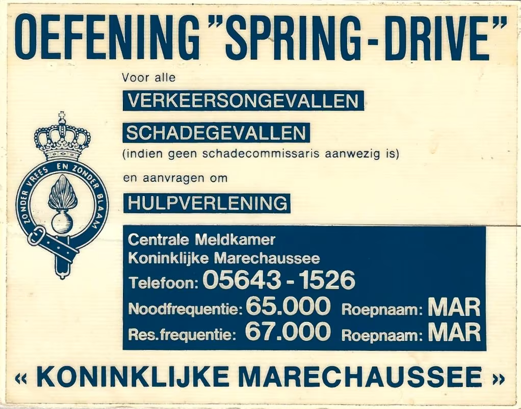 Oefening Spring Drive – 1981 Oef. Spring-Drive – Ongevals sticker Klik hier voor de leesbare tekst van het bovenstaande krantenartikel uit het Reformatorisch Dagblad van 23 mei 1981