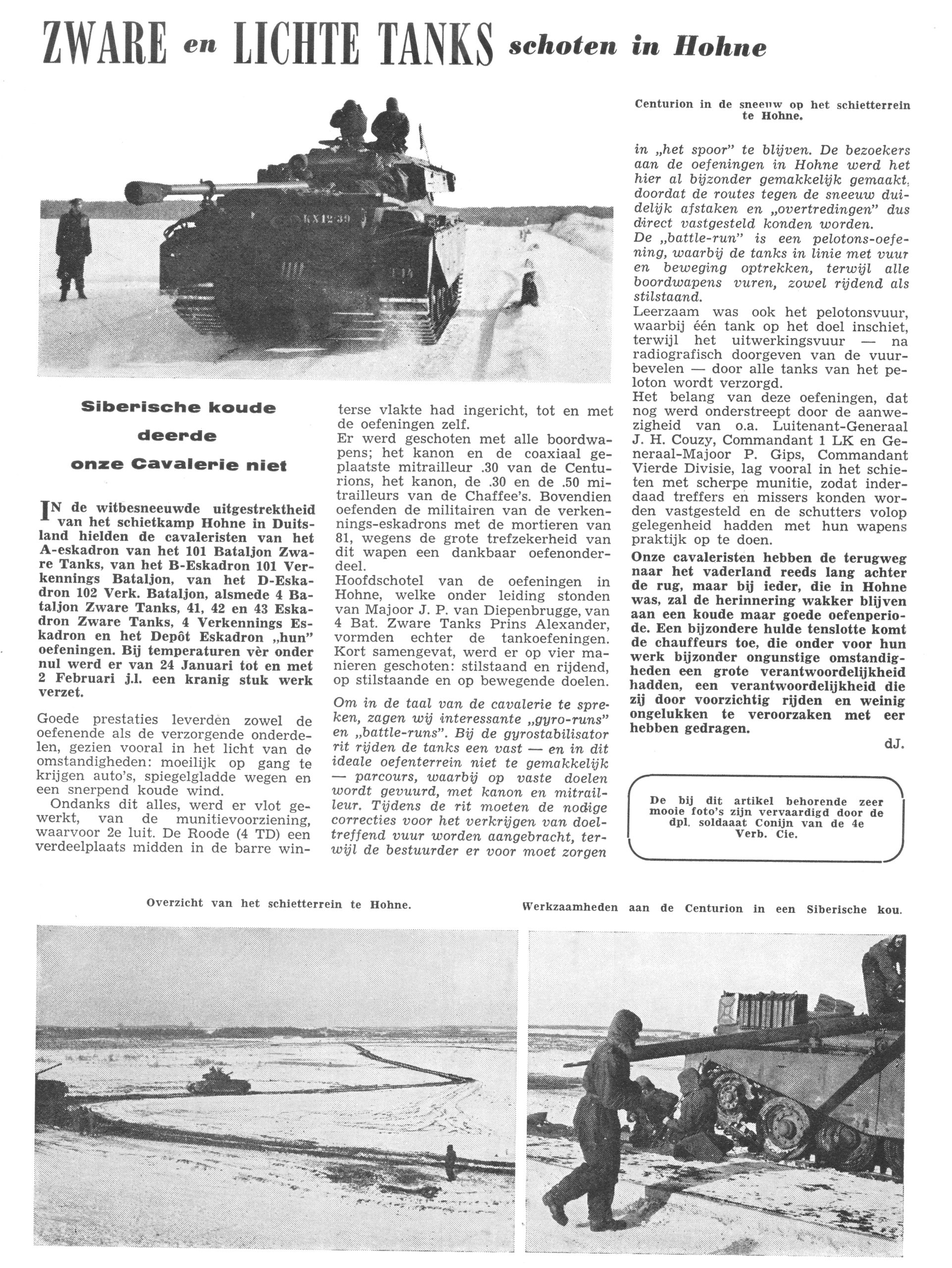 Schietserie – o.a. 101 Bat Zware tanks – 1956 Verslag schietserie van o.a. 101 Zware tanks uit De Legerkoerier nr 3 1956: Schietserie Hohne. Bron: Legerkoerier nr 3 1956
