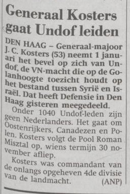 Het ministerie van Defensie leverde van 16 januari 1995 tot 31 mei 1997 de force commander van UNDOF, generaal-majoor Johan Kosters. Als commandant was hij verantwoordelijk voor de inzet en het wel en wee van 1.054 militairen en 90 waarnemers (peiljaar 1996).