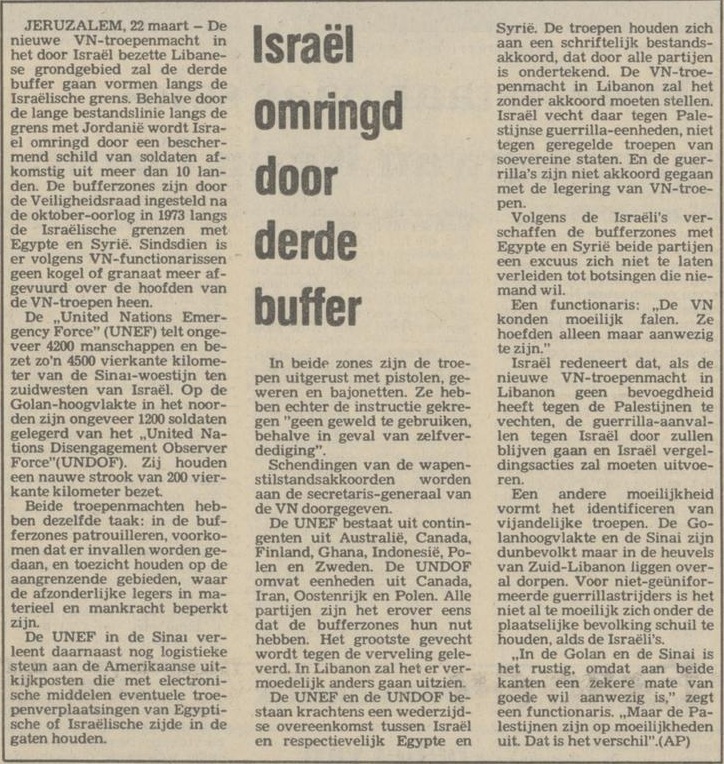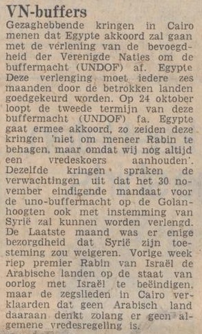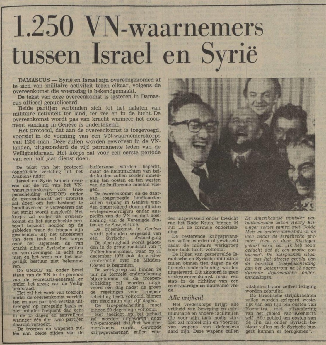 Israël en Syrië sloten in mei 1974 een overeenkomst om de Israëlische strijdkrachten terug te trekken uit een deel van de Golan. Israël had dat tijdens de Yom Kippoer-oorlog van 1973 veroverd.