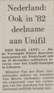 UNIFIL – Krantenartikelen 1981