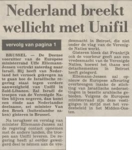 UNIFIL – Krantenartikelen 1982