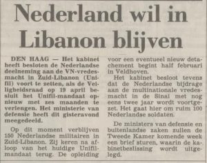 UNIFIL – Krantenartikelen 1984