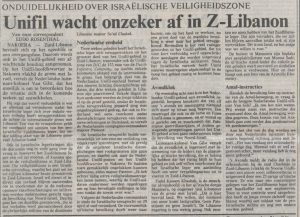 UNIFIL – Krantenartikelen 1985
