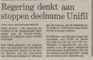 UNIFIL – Krantenartikelen 1985