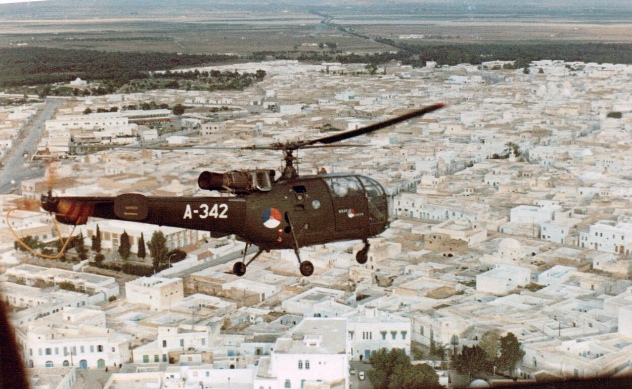 einde van de uitzending kunnen volbrengen. Daarom besloot Defensie 2 Alouette III-helikopters in te zetten. De Hr.Ms. Poolster bracht deze toestellen en het personeel naar Tunesië.