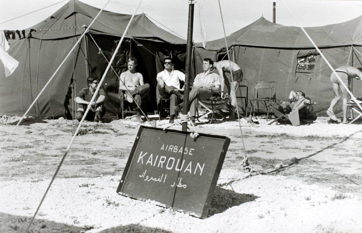 Eenmaal op het landmachtkamp, geven de luchtmachters hun eigen draai aan de manier van wonen en werken. Ze slapen in eigen tenten, onderofficieren en officieren ‘gewoon’ bij elkaar. Zelf besluiten ze: de ‘postvlucht’ vertrekt dagelijks om half 8 naar de Nederlandse ambassade in het 200 kilometer verderop gelegen Tunis. “Zodat we niet om 8 uur op appèl hoefden te staan”, grinnikt Brinkgreve.“Dan bleek je met z’n allen op een rij te gaan staan en vertellen dat je er bent…”